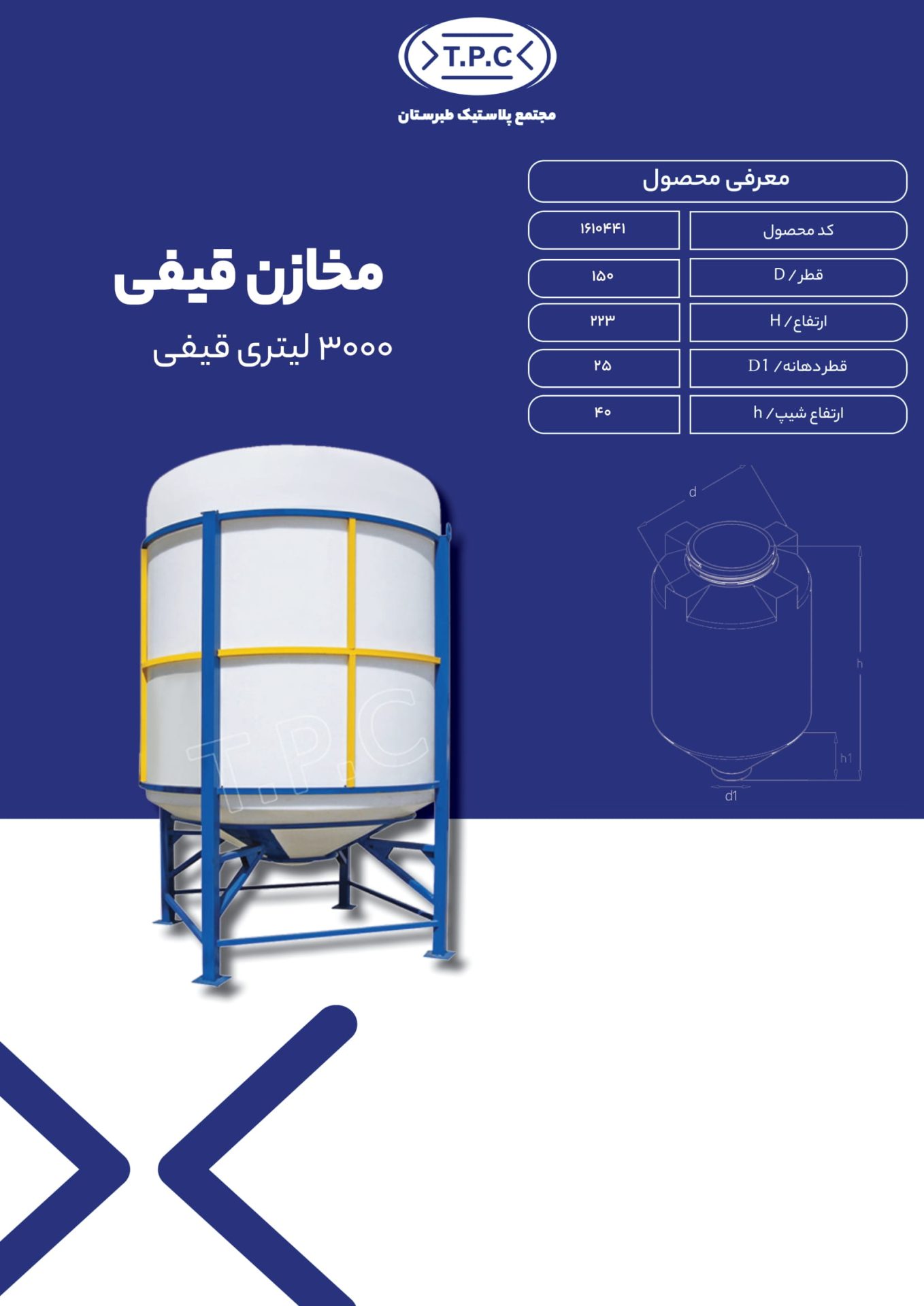 | نام کالا | مخزن 3000لیتری قیفی طبرستان |